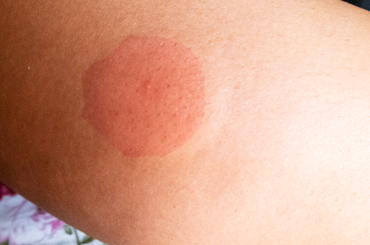 발열,오한,두통,붉은반점등이나타나며,증상이악화되면붉은반점이뚜렷해지고물린 피부주변으로퍼져나갑니다.
