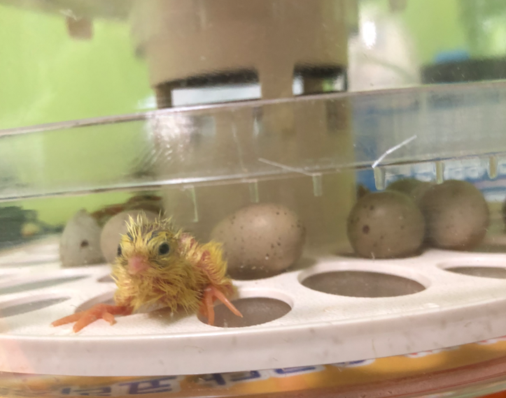 기성제품부화기에서 태어날 경우 하루정도 부화기 안에서 털을 말리고 사육장으로 옮겨주는 것이 좋다고 합니다.