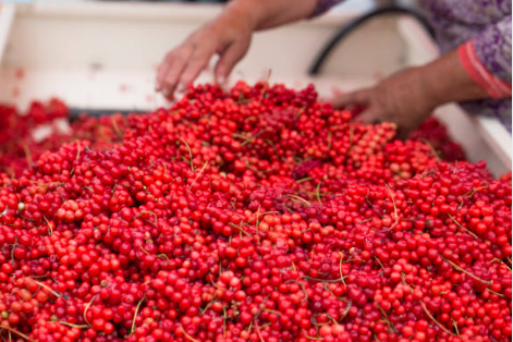 오미자는 둥글둥글한 모양의 작고 새빨간 모양의 열매입니다.