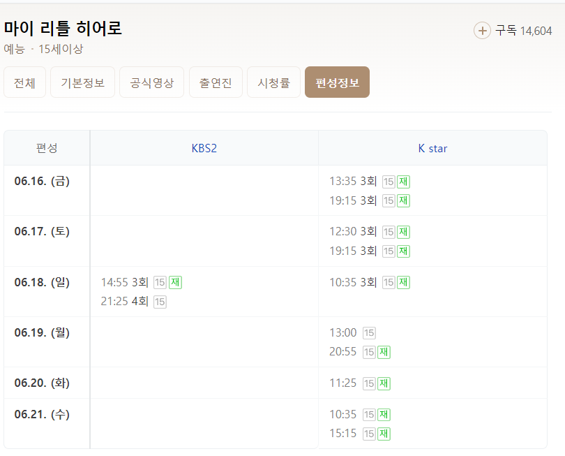 마이리틀 히어로 본방송을 아쉽게 놓치신 분들은 재방송 시간표를 보시고 편히 집에서 마이리틀 히어로 시청 하시길 바랍니다.