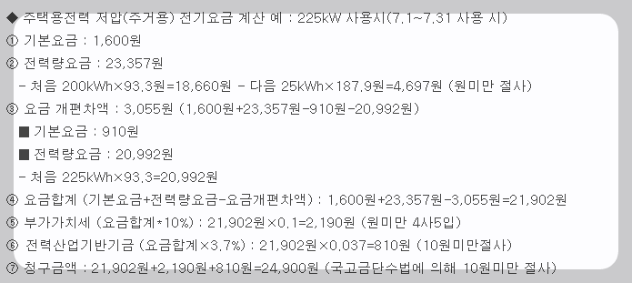 기본요금과전력량요금의합계에전력산업기반기금과부가가치세가포함되어청구금액이결정됩니다.