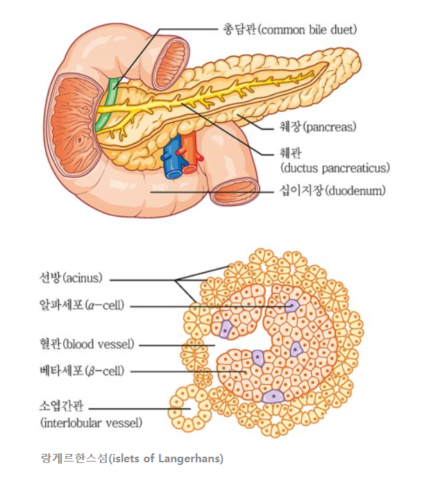 전구체인 프로인슐린이 생성되고, 골지장치 내에서 인슐린으로 되어, 저장과립으로서 축적되고, 고혈당 등의 자극에 의해 분비되는데 이것을 베타(B) 세포라고 합니다.